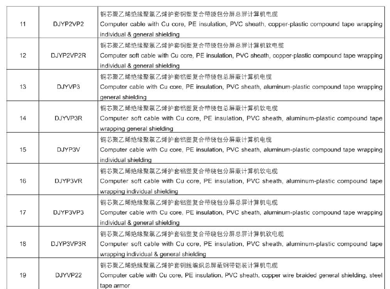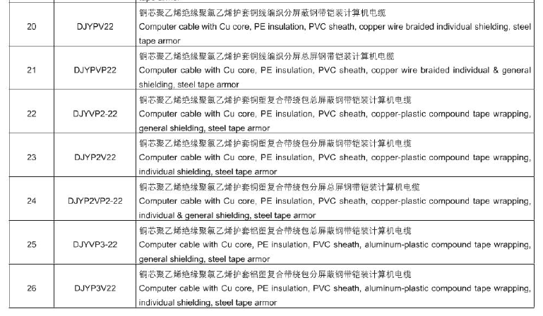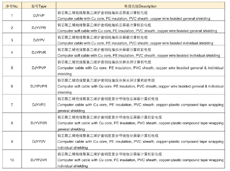 計算機及儀表用電纜 DJ